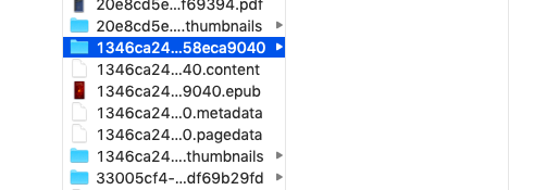 reMarkable: ~/.local/share/remarkable/xochitl/ ls -l 42ed5459-e266-4c9a-8e69-7dd7f6aa851a* -rw-r--r-- 1 root root 20041 Nov 23 20:02 42ed5459-e266-4c9a-8e69-7dd7f6aa851a.content -rw-r--r-- 1 root root 414900 Nov 23 20:02 42ed5459-e266-4c9a-8e69-7dd7f6aa851a.epub -rw-r--r-- 1 root root 317 Nov 23 20:03 42ed5459-e266-4c9a-8e69-7dd7f6aa851a.metadata -rw-r--r-- 1 root root 2448 Nov 23 20:02 42ed5459-e266-4c9a-8e69-7dd7f6aa851a.pagedata -rw-r--r-- 1 root root 1755941 Nov 23 20:02 42ed5459-e266-4c9a-8e69-7dd7f6aa851a.pdf |