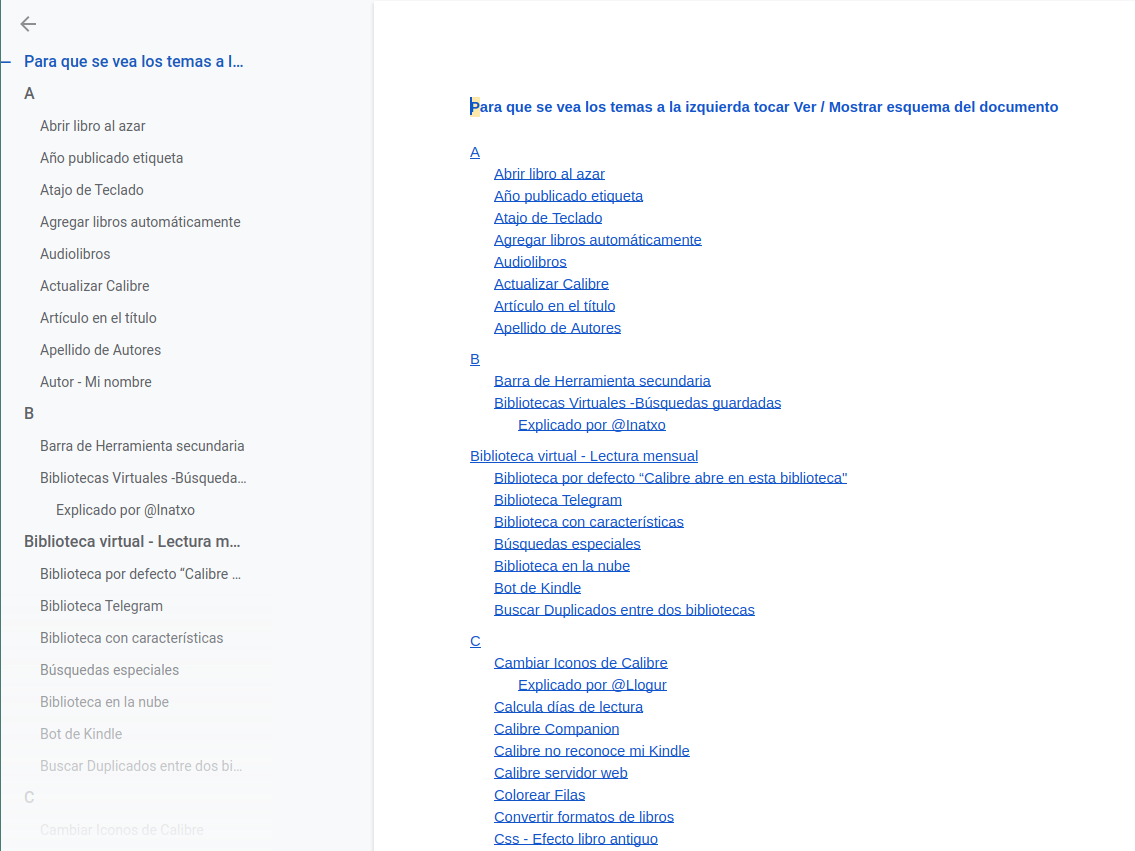 I have an index of various topics and tricks of Calibre, but I have it with photos and in Spanish. I leave you a sample. |