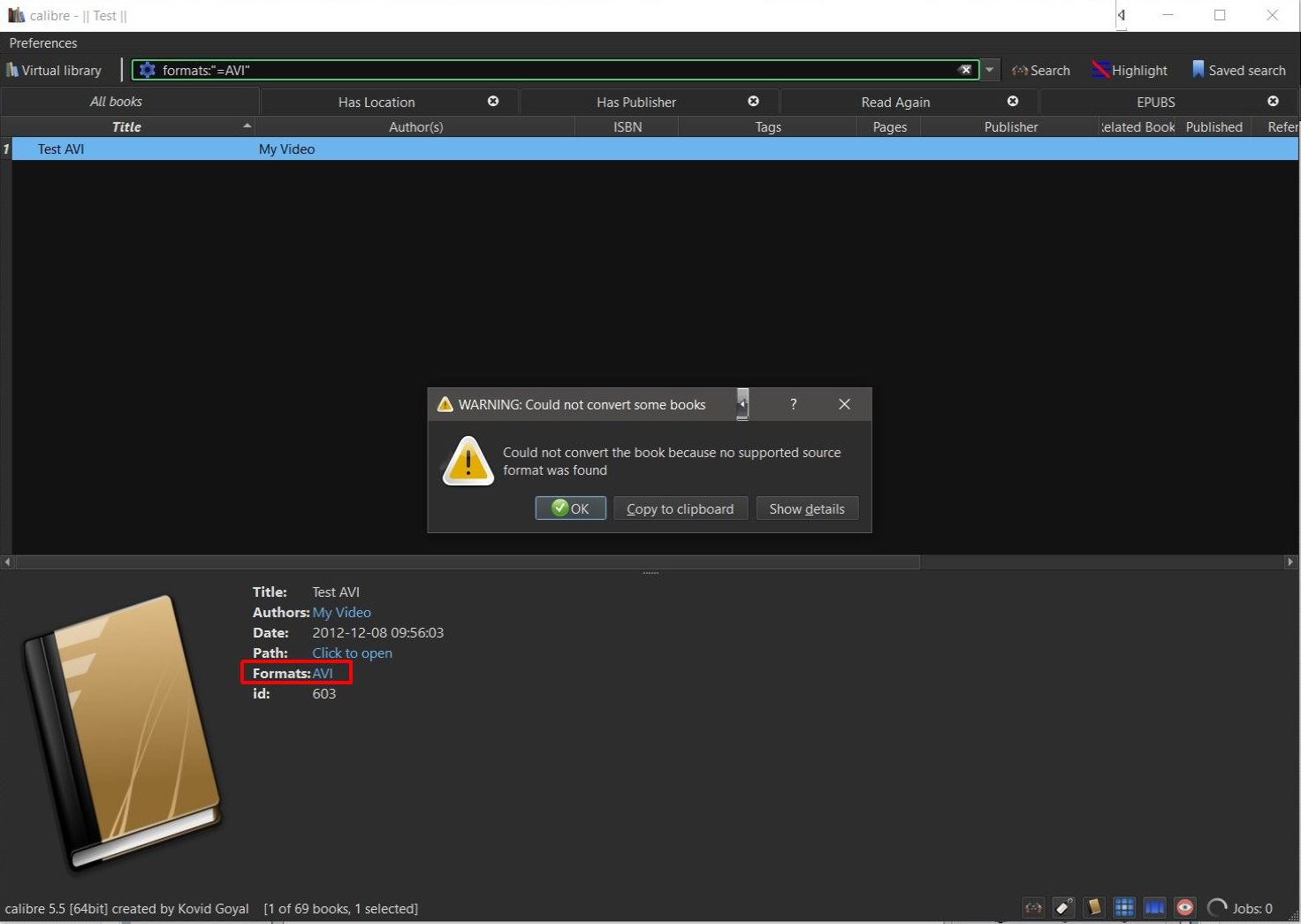 WARNING: Could not convert some books: Could not convert the book because no supported source format was found