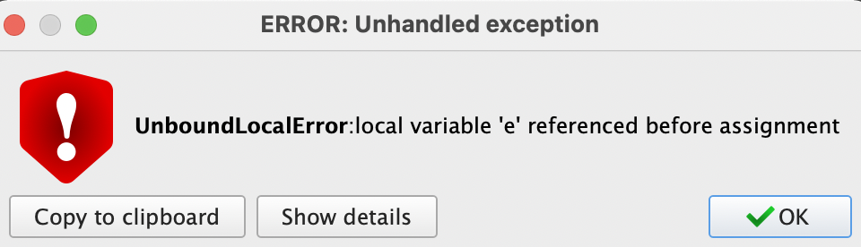 Then after I click OK, the UnboundLocalError pops up: