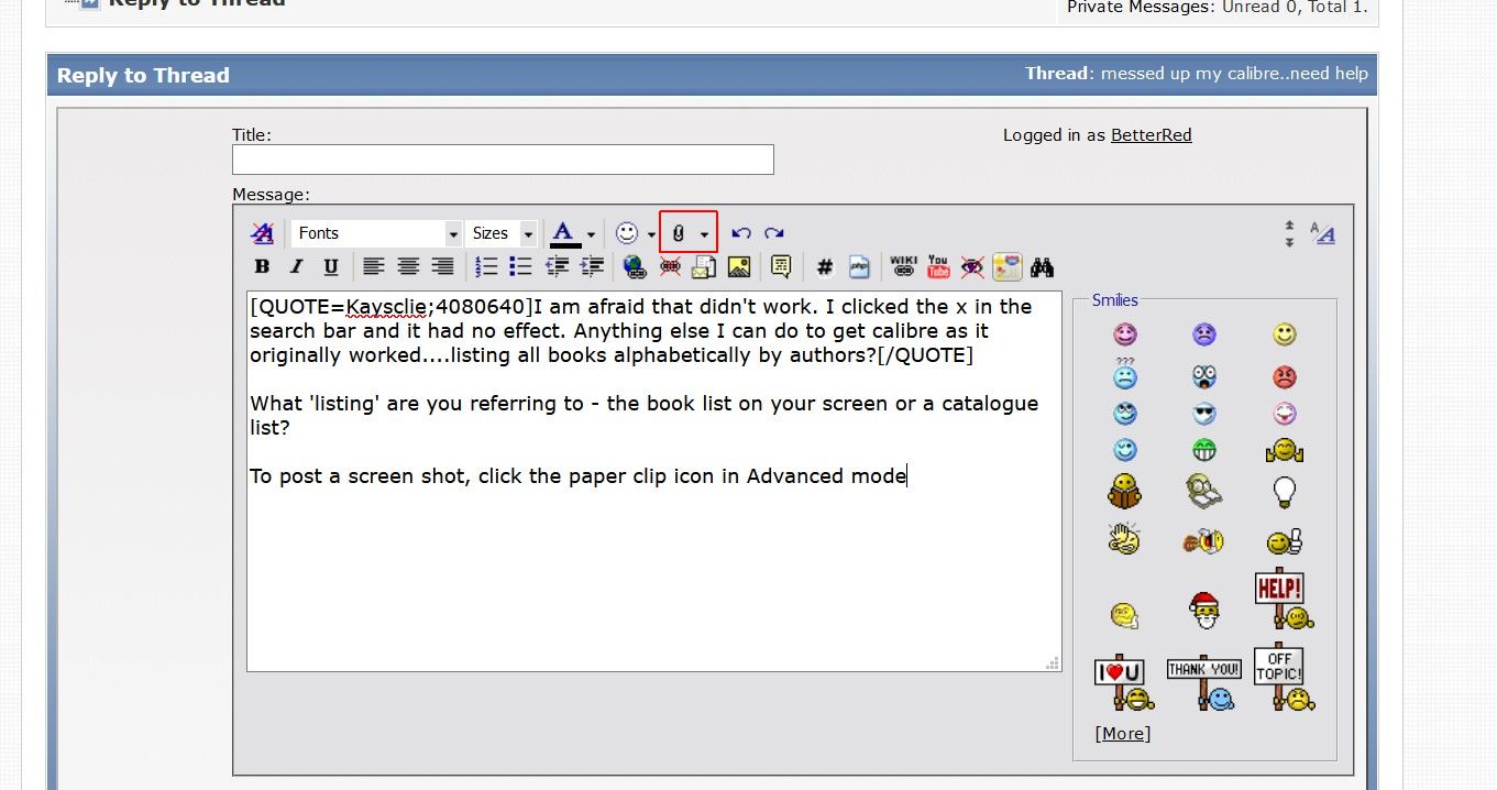 To post a screen shot, click the paper clip icon in Advanced mode BR |