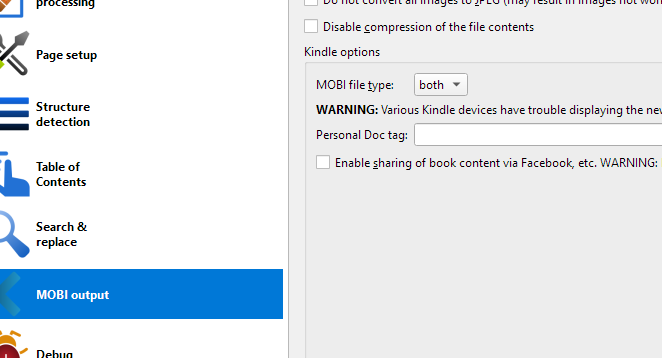 To get a dual mobi, in the Calibre conversion options, go to MOBI output and under MOBI file type choose "both" Shari |