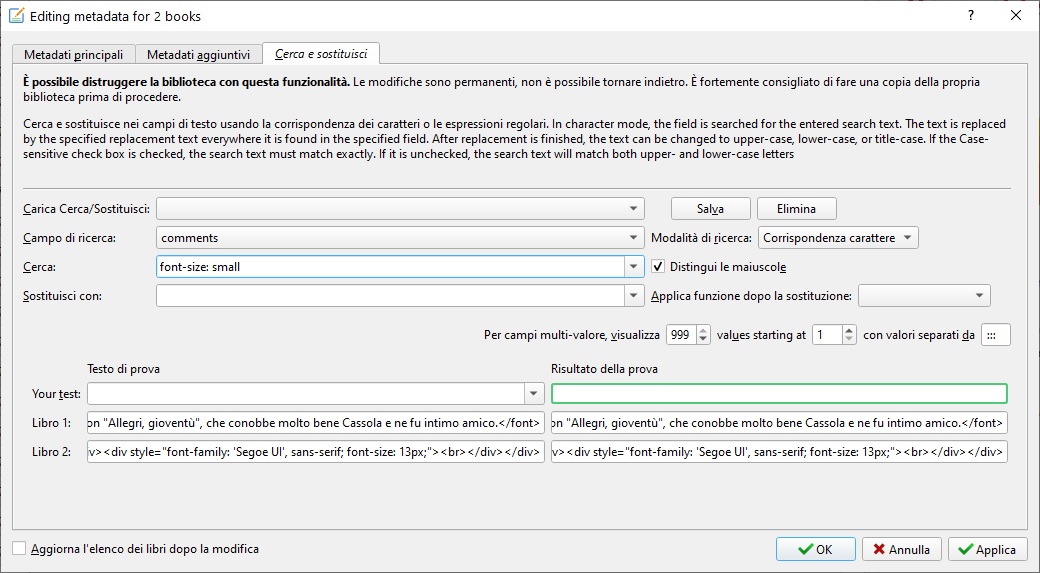Is there a way to remove the font size from Comments in Modify Metadata, at once and throughout the library as shown in the accompanying images? Thanks and bye, Gianni |