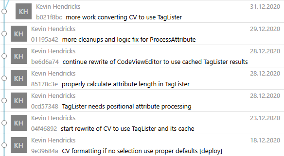 Certainly, this group of commits is suspicious (image). I did not report it before - after all, the work was "in progress", the changes were significant, and I stopped understanding them. |