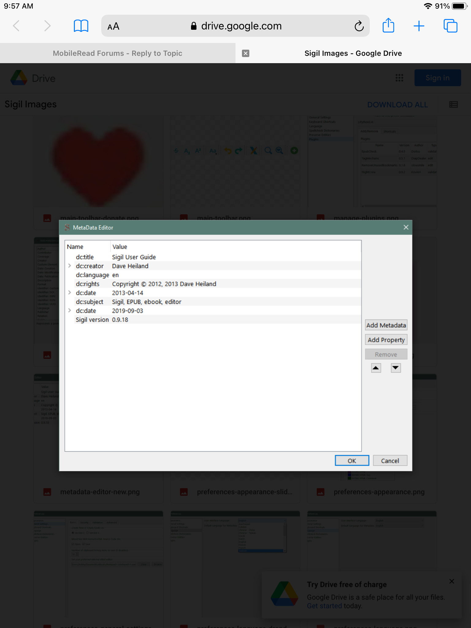 With Sigil-1.5.0 you should be seeing something like what you attached to your recent post. Notice that it has no dc:creator used anymore just Creator, etc Yet when I look at the that google drive you posted I am still seeing the dc:creator version. Please compare these images to see the difference. The first is what you just posted to Mobileread, the second is what I am seeing from your Google Drive link. Thanks, KevinH Last edited by KevinH; 02-18-2021 at 11:59 AM. |