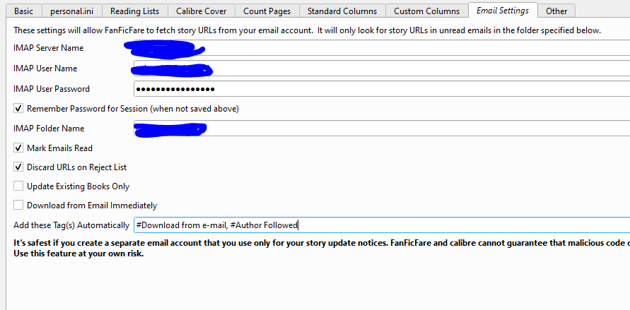 You posted a personal.ini that had 'Removed' for user/pass; not the XXXX that the 'View "Safe" personal.ini' button would give you. Did you save it with those?