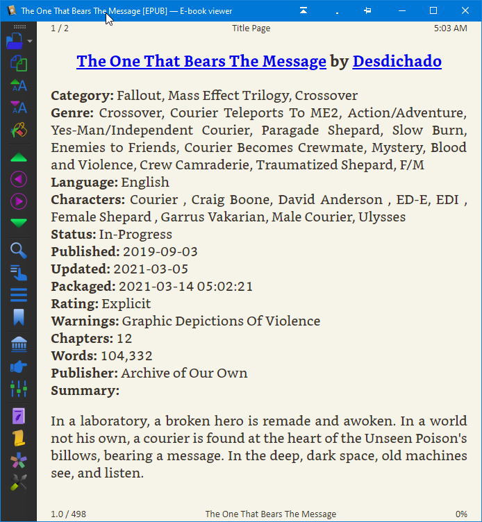 ## dateUpdated,numChapters,numWords at a minimum) will be shown.