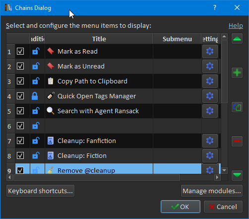 Note, however, that scopes should be configured per action. Also some actions, most notably Calibre Actions, do not support scopes. Actions that don't support scopes will not have any icons in the scope column, and add/modify scope menu entry will be greyed out for them. The only way to do this would be by making the dialog wide enough for it to disappear. Nothing has changed regarding this. It has been this way from the start. Quote: