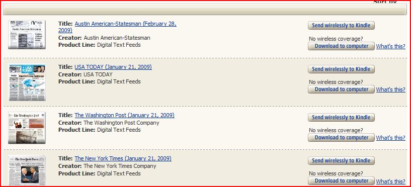 If you don't mind, I'd like to walk you through the steps just to make sure we're on the same page. You can also do this from the "Manage Your Kindle" page. Go the section at the bottom labeled "Your orders and individual charges" If you have a lot of content, click on "newspapers" to the right just to show them only. Click on the drop down box for "Download/Send to" and you'll see your choices (computer or Kindle). In your case click on "computer" and it will download. Also to the right side you'll see a box of items recently Whisperneted to your Kindle. If it was successful, you'll see a green check mark. If not successful, you'll see an orange pending clock. If you don't see the orange clock next to your NYT subscription (trial or not), there may be another issue. Maybe the Times is late in getting the digital version out (it has happened before with other papers). |