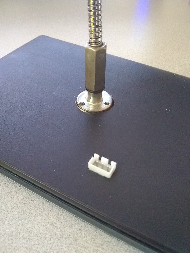 I usually glue a 1/4-20 T-nut to the back of my devices so I can use a little bendy leg. On my Poke3 I have glued it to the book cover. I haven't made my mind up whether I like the cover or not. I usually install a connector on my devices for the console UART. I like to watch it boot (when I'm screwing it up). |