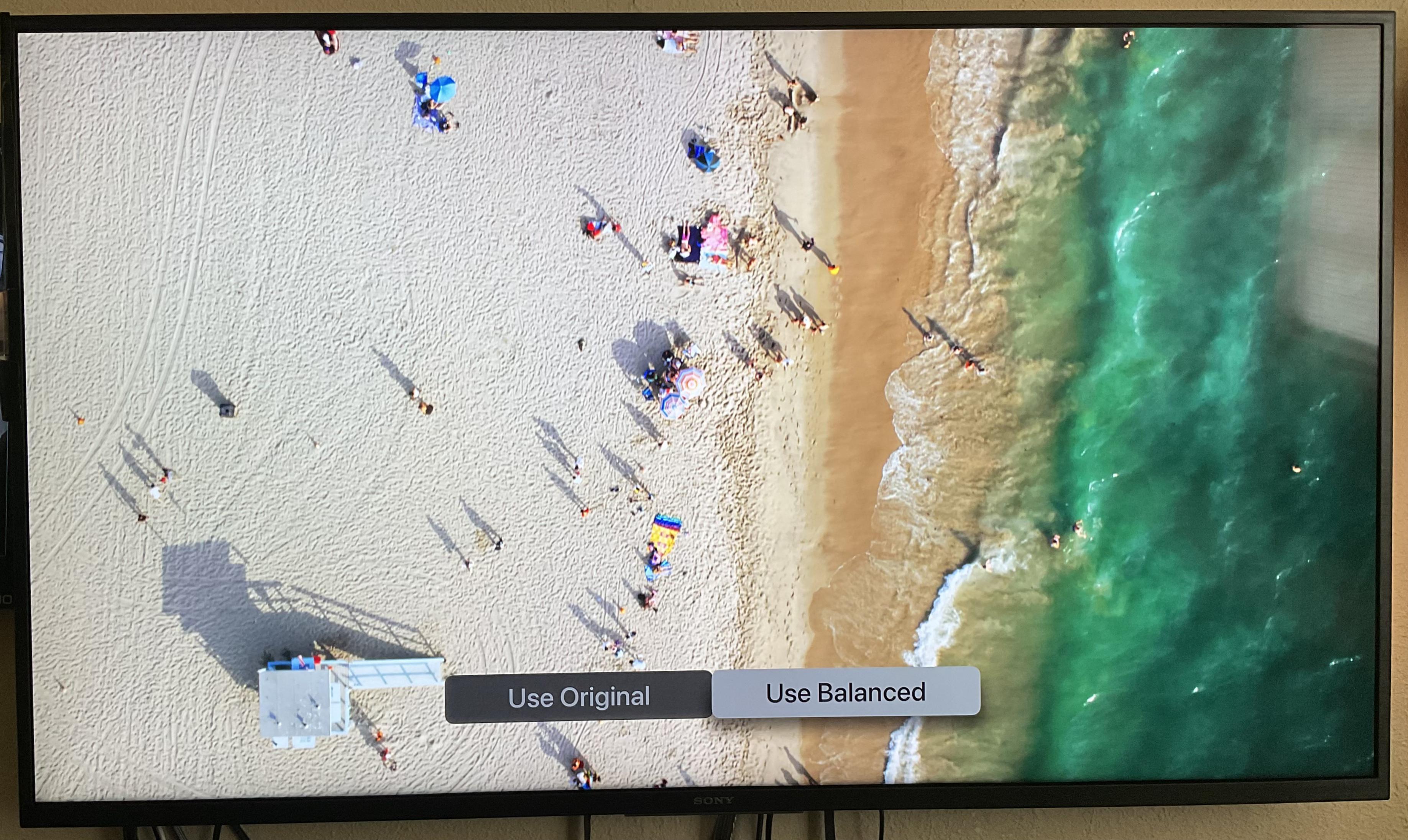 I used the Cinema color setting option because most experts say that is the option which Sony claims is the closest to the best out of the box calibration. In other words, it is supposed to be the most color accurate. The ATV color calibration feature appears to have made a very slight change by making the picture a tiny bit warmer. Other than that I cannot see any obvious changes. However, the Sony Bravia TVs do have a reputation for really accurate color calibration out of the box. It will be interesting to see if this makes a big difference with a TV that has poor color calibration. BTW, the ATV color calibration showed me the attached beach scene to illustrate the before and after differences. However, that is perhaps the absolute worst scene to use as the sandy beach has almost no frigging color in it! Apple really needs to think through what they are doing. I snapped this photo of my TV using my iPad Air 2020 and made no color adjustments to it. Comparing the photo to my TV set after the color calibration it does appear that the sand on the left is slightly warmer in color. Apple really should use a better image though that will well illustrate any changes. |