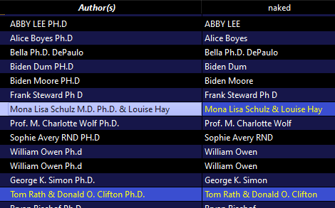 ![]() edit: Well, I've set two action chains: one populates the #suffixes column with PhD, another clears the PhD string from author field. Looking good so far. Need to do the same for MD, MPH etc. There are also cases where author has various degrees. grr... Last edited by Comfy.n; 12-22-2024 at 04:14 AM. |