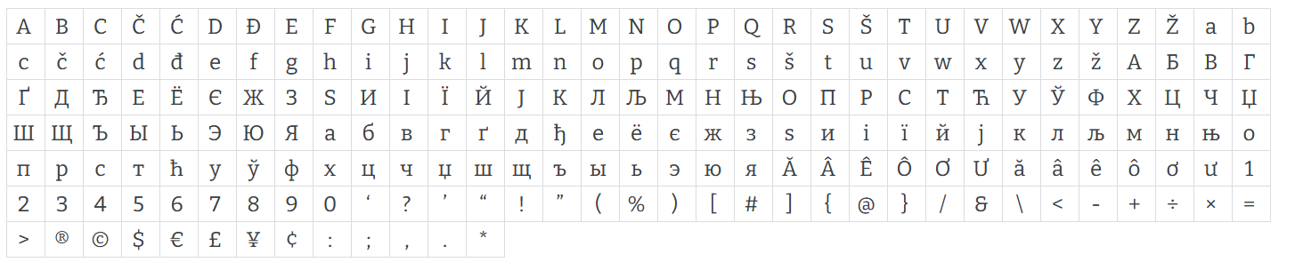 I don't find it prettier than Bookerly but again, a personal taste. As for the glyph collection? I've attached an image of Bitter's glyph support below. Other than Latin and Cyrillic, it's glyph support is not impressive with 976 glyphs supported including a very unimpressive 2 ligatures.