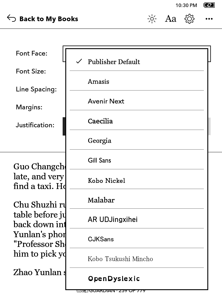Anyone have any luck overwriting the CJK fallback fonts? I'm getting steadily more annoyed by the missing Simplified Chinese characters in the titles of some of my books (see screenshot) and decided to try to do something about it.