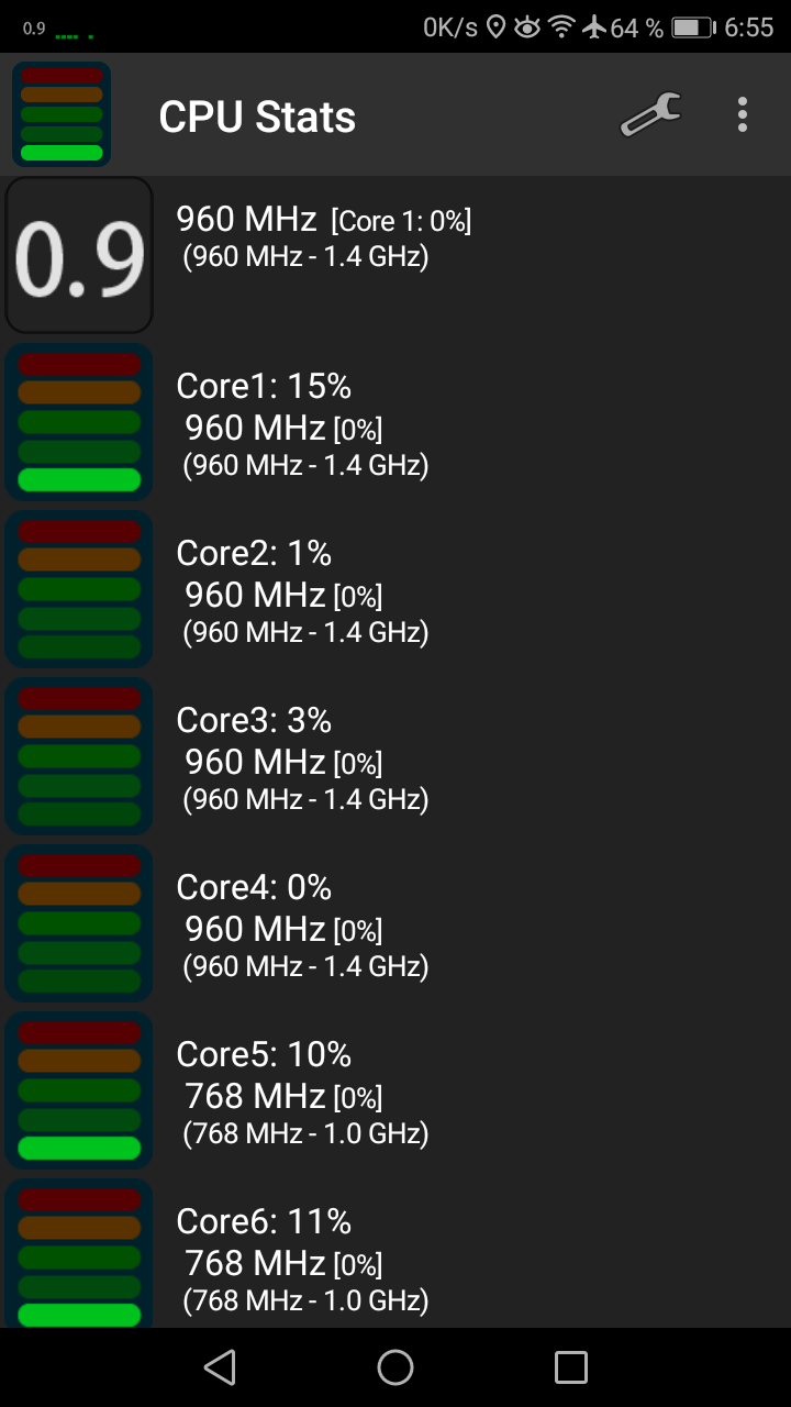Screenshots are from my phone Honor 6X (with Q Snapdragon 430 with 4 x 1,4GHz and 4 x 1,1GHz cores) from apps CPU Stats and CPU Throttling Test. You can see every core have his own work with different load. And in next comment i'll sent here screenshots from Poke 2. |