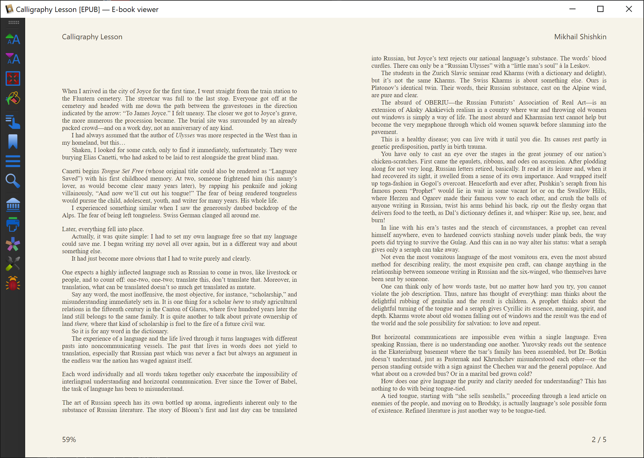 When I open an epub inside Calibre, the UI looks like this. ![]() However, When I open a epub by double clicking the file, It looks like this. ![]() How could I keep the first/original UI when opening Calibre Viewer from a epub file outside Calibre? Thanks. ![]() I'm using windows 10 |