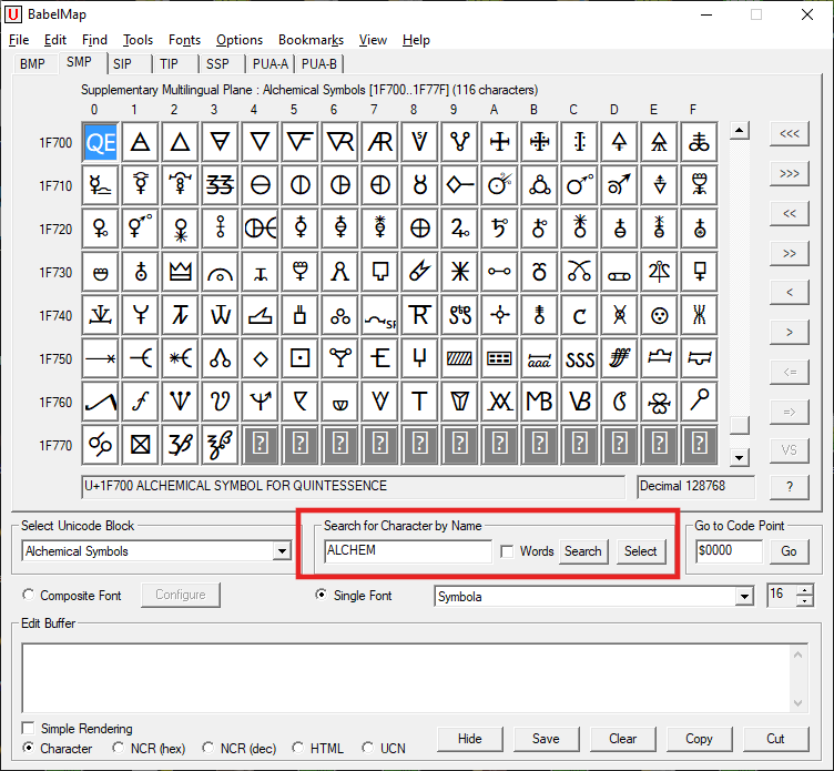 Calibre Editor's Edit > Insert Special Character... is absolutely fantastic. It displays all Unicode characters by category, and even lets you search: Absolutely amazing, and beats the pants off of most paid/professional programs too! LibreOffice's Insert > Special Character is pretty great too, but it only searches characters within the selected font (so Symbola is a good choice there): Microsoft Word's Insert > Symbol is absolute crap: BabelMap also lets you search: and the great thing about BabelMap is you can Fonts > Font Coverage and show exactly which fonts on your computer have those obscure symbols. ![]() Quote: