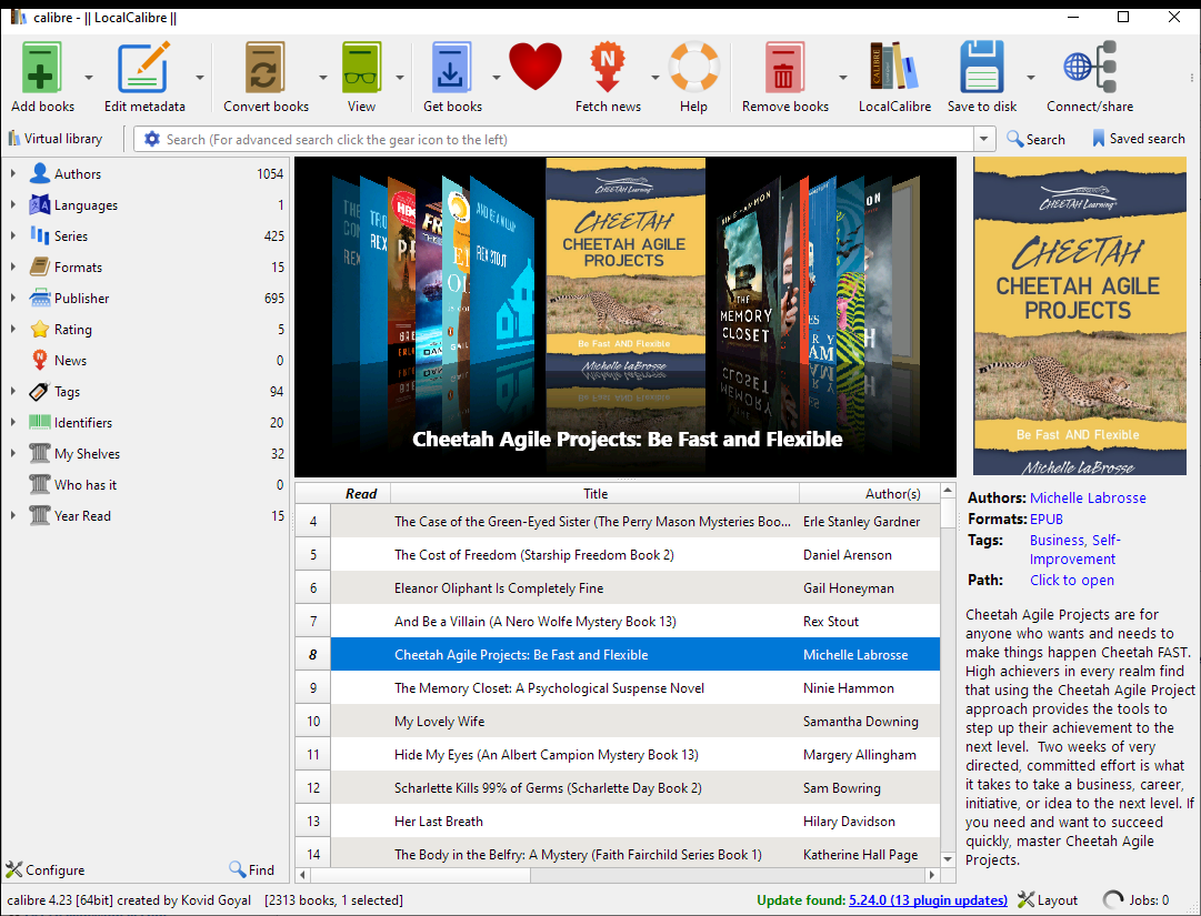 You can also un-select all books by left-clicking in the empty space below the last book in the list or to the right of the rightmost column. Either of these may be inconvenient depending on your book list layout. |