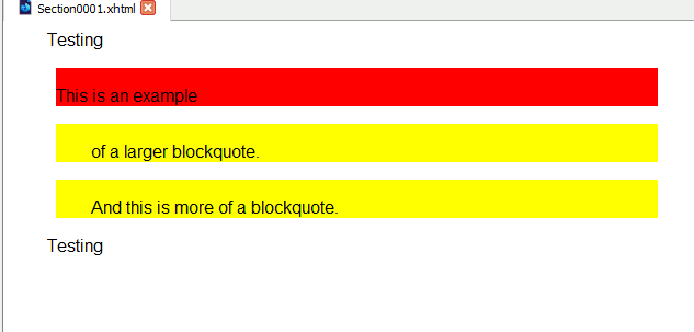 (Side Note: The red background-color went poof. Suspecting it's a conversion bug.) Hmmm... similar to those Calibre checkboxes, it would be nice to completely strip/ignore certain properties. Nice to have broad/easy-mode checkbox categories like "Colors" + "Margins" + "Floats". But also a surgical/advanced-mode where you could specify attributes to strip: