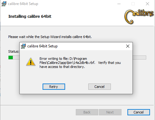 Problem is that it does not exist BUT "2d704825.rbf" exist with the date of the install attempt. Do not know if the error is with the installer or Calibre as it is 1 digit off. |