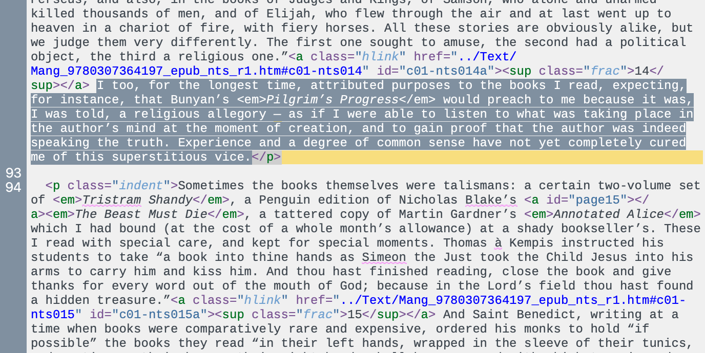 Line 18 in that file is the second paragraph. When I read the book, this paragraph went over the page break. And there is a long standing bug in the firmware with annotations that include the last word in a paragraph that goes over page break. If you try to long-press on that word, it won't select or show the dictionary, it will turn the page or show the menu bars depending on where the word is on the screen. If you start selecting from earlier in the paragraph up until the end of the paragraph, the highlight menu will be shown and save, but not shown in the book. If you change the settings (font size, line spacing or margins) so that the paragraph is on one page, the highlight will be shown properly. It is a little more complicated by exactly what is at the end of the paragraph. If there is only a single punctuation mark, you will see this problem. If there a multiple, usually a full-stop and a quote, the selection works properly. This bug only affects epubs. And it is a long-standing bug. Kobo should know about it, but, I always recommend reporting them so that they know people are concerned about them. |