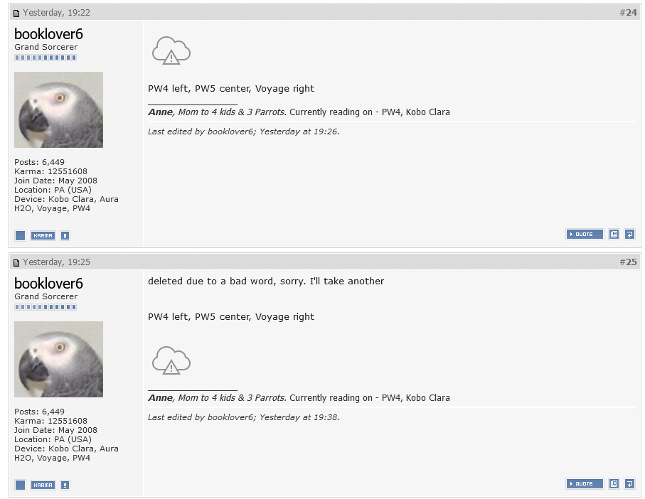 Also I think they are wrong about manga: it very much depends on how it is formatted. I downloaded one from KU on my PW4 and it did have ‘panel’ navigation. One of the Aa options for the manga I downloaded is Animation (on my PW4 at least it is greyed out, ‘Not Available’). Last edited by tomsem; 10-28-2021 at 02:18 PM. |