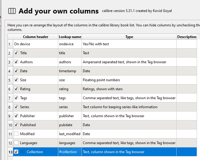 I do not understand the columns thingy in Calibre. |