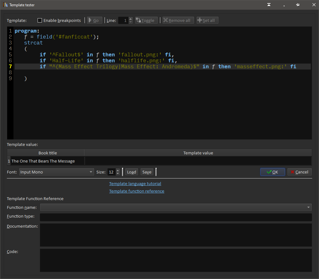 program: f = $tags; strcat( if '^Fallout$' in f then 'fallout.png:' fi, list_contains(f, ',', '^Half-Life$', 'halflife.png:', ''), if "^(Mass Effect Trilogy|Mass Effect: Andromeda)$" in f then 'masseffect.png:' fi ) |