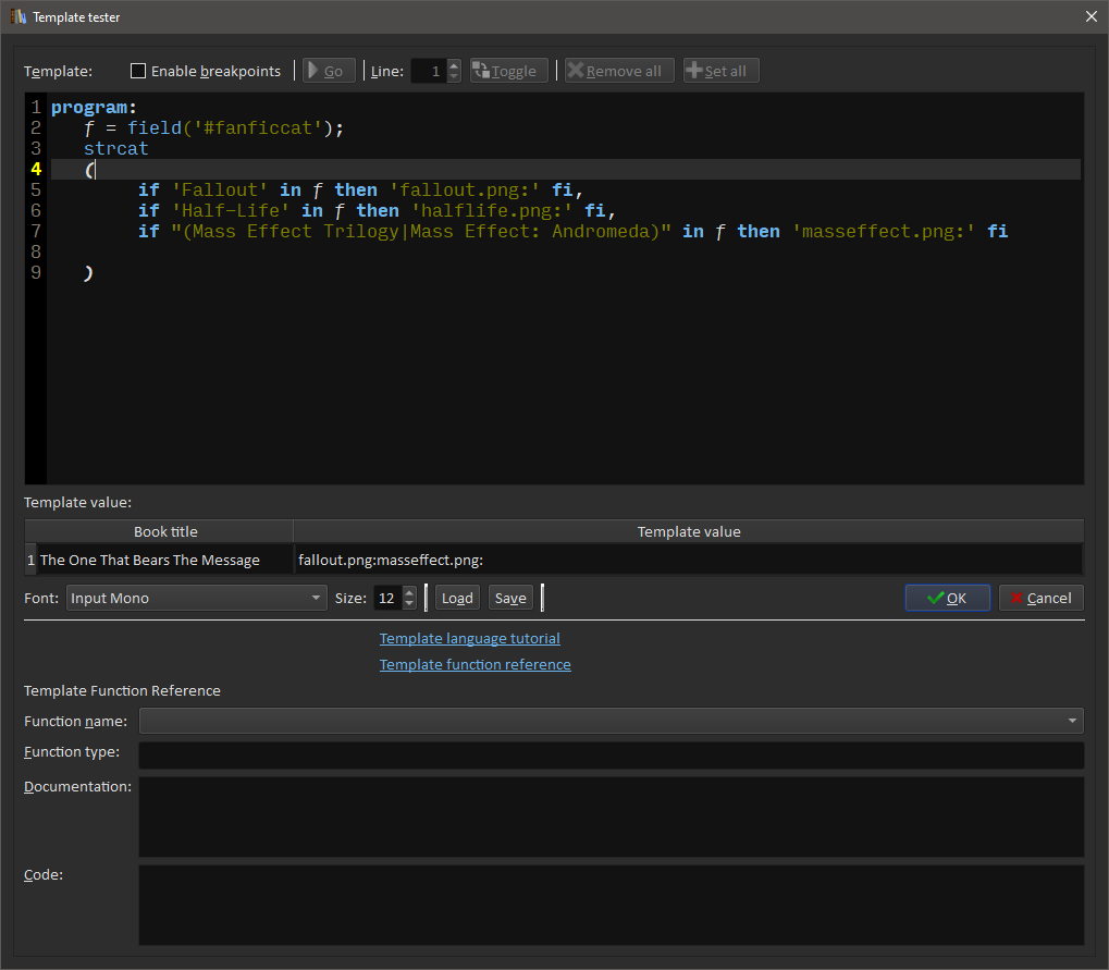 program: f = $tags; strcat( if '^Fallout$' in f then 'fallout.png:' fi, list_contains(f, ',', '^Half-Life$', 'halflife.png:', ''), if "^(Mass Effect Trilogy|Mass Effect: Andromeda)$" in f then 'masseffect.png:' fi ) |