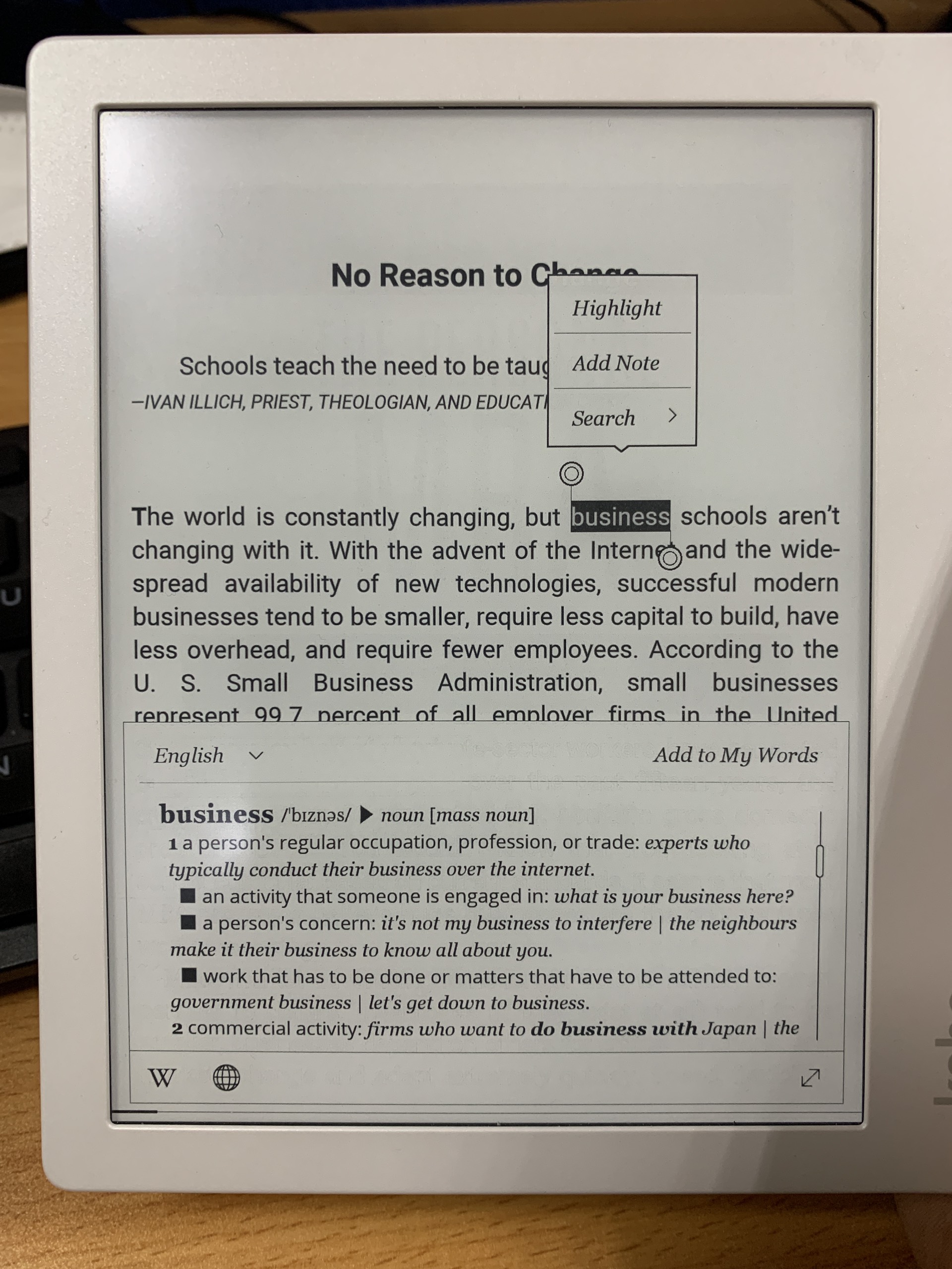 As I am using Kobo Libra 2, the Kobo does not support English - Vietnamese in its default Nickel Reader. I got the work around, however the font size is too small as you can see in the photos. Does anyone know how to increase font size of this html/zip dictionary? I tried to unzip and open html files with edge / notepad but it was not similar to web html code, and I couldn't find a way to increase the font size. I attach the photos of the English-Vietnamese (named as English-Deutsch on the photo) and the Oxford English (default, for font size comparison). The dictionary was copied to kobo\dict\ and was uploaded in dropbox: https://www.dropbox.com/s/8owksmapgu...en-de.zip?dl=0 Hoping someone can show me the way. Thank you. |
