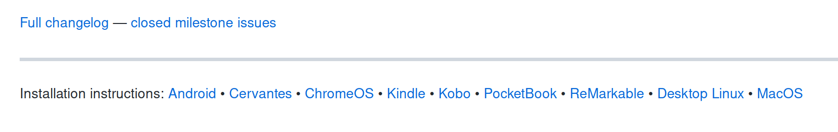 ![]() Per platform install instructions are in the wiki, where they belong. Each release contains changes of that specific release. We're not going to add install instructions for each supported platforms on each release. That would be insane. |