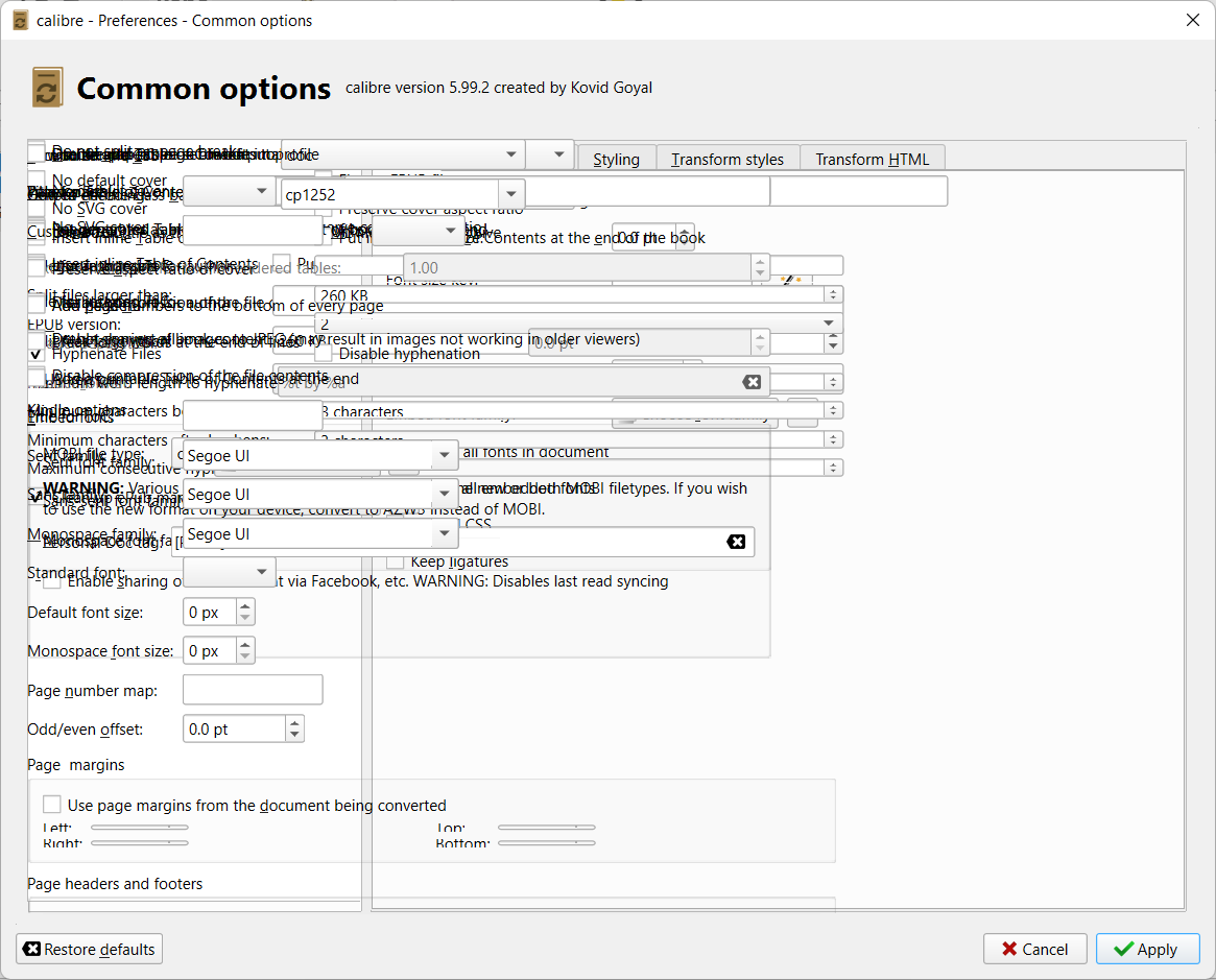 This happened after I set the Conversion => Common options => Page setup => Output Profile => tablet and all 4 margins to 0.0pt. After this, if I clicked on any of the 3 Conversion options, I got a rather messy popup. See attached image for that. Last edited by DNSB; 01-05-2022 at 01:01 PM. |