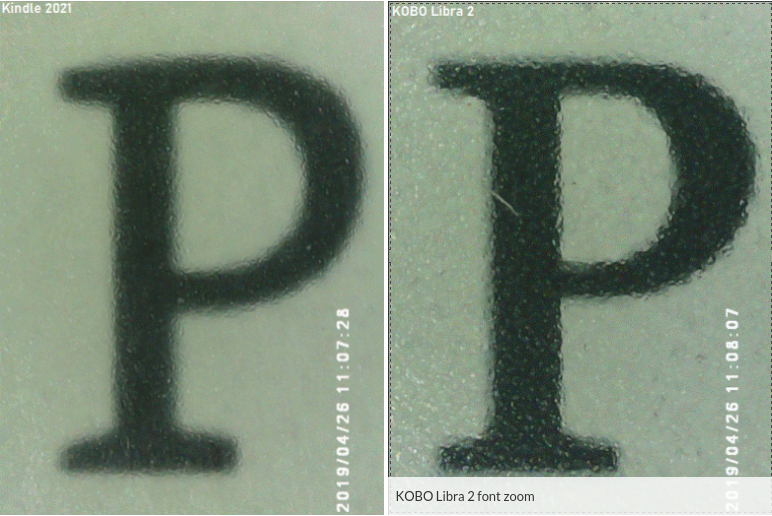 The content also includes a comparison of screens and fonts https://cod-box.net/kobo-libra-2-vs-...perwhite-2021/ Both devices have the correct backlight : Font Kindle v Libra 2 If you prefer a stronger contrast, Libra 2 is a little better : Last edited by issybird; 01-10-2022 at 05:44 PM. Reason: Oversize image attached as thumbnail. Please read the guidelines for limits on image size. |