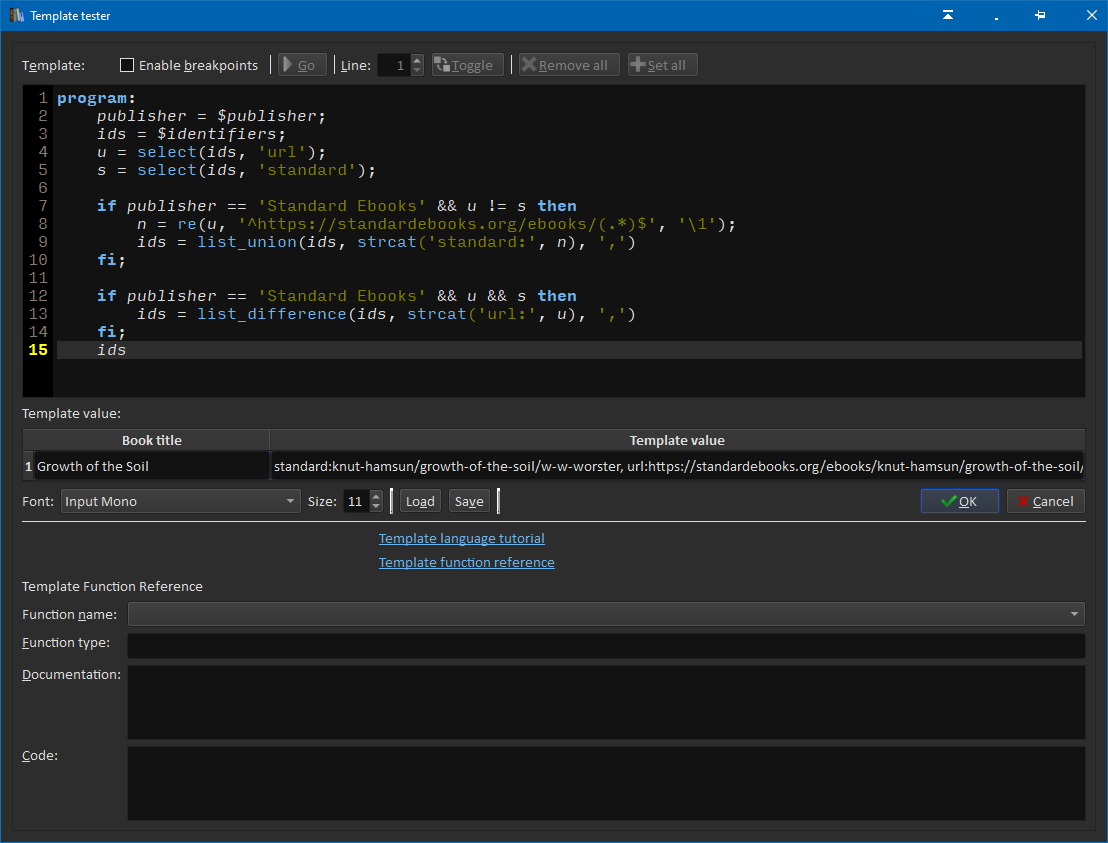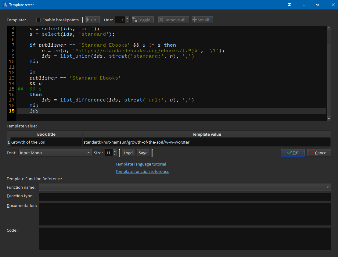 However, I suspect your logic won't do what you want. If s is non-empty then there is a "standard" identifier. If s != u then you add a standard identifier, which is probably different from the original so there are now 2 of them in the list. When you save the identifiers calibre will pick one of them; which one is undefined. Thus if s is non-empty then you must remove the existing "standard" identifier before adding a different "standard" identifer. Once you have done the above the rest of your logic assumes that 's' contains the current value of the "standard" identifier. Your template must ensure that is the case, perhaps by assigning to 's'. Depending on what you are doing it might be easier and less buggy to loop through the identifiers, building a new identifiers list. |