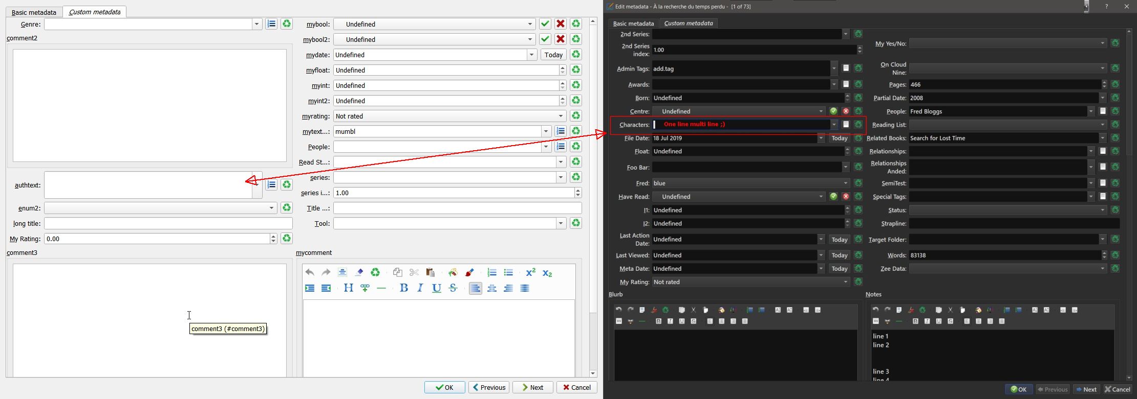 ![]() Another wish list item. In book lists I hide long text columns with an 'is set' icon, and to avoid horizontal scrolling I shrink the column widths accordingly, and I often give such columns a 2 character Header name. It would be good if columns had a another 'label' (e.g. Column title) which if present would be used in Book Details, Metadata Edit etc. In this screen shot the Red labels in the Book details panel are Column titles for my #blurb and @checklist columns. As always - only if its easy-ish ![]() BR |