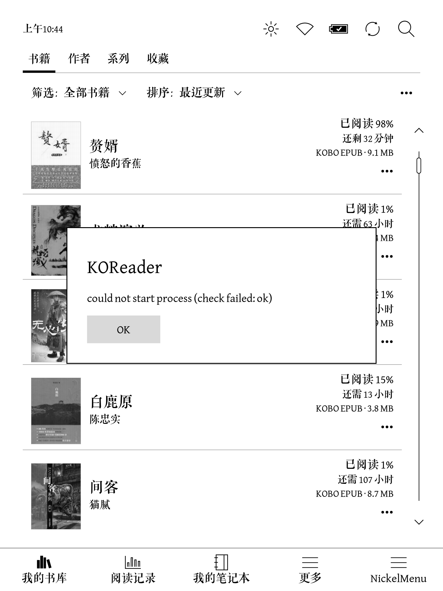 after minutes later,I will never launch Koreader till I reboot again.Nickelmenu gives me a popup as attached pic.(SSH service remains normal) What should i do to fix this??? Koreader Ver:2022.1 Fw ver:4.31 NickelMenu:0.54 2.observe a unstability while I intall Nanoclock 0.11,device randomly crashes. Sage with power cover. If power cover removed,it seems normal really feel BAD