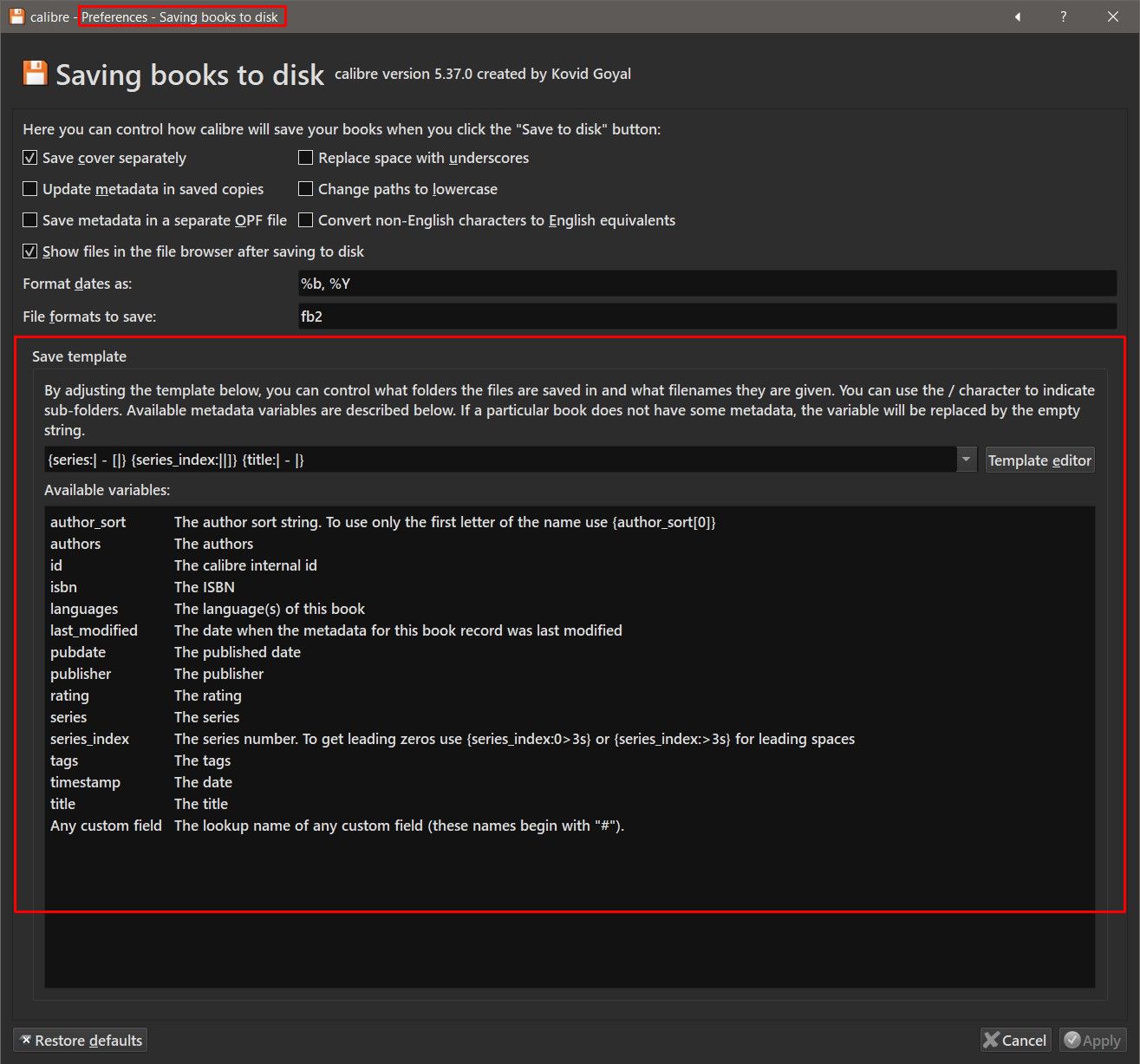 I have recently installed linux and calibre onto my chromebook. I need to edit the way the files are saved.