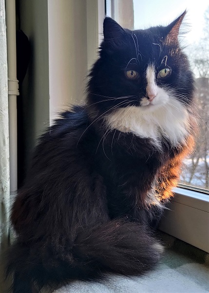 One of my three kitties, Ruufi, died from heart failure a year ago (he was probably quite old, though his true age was unknown). After Ruufi's death I adopted Muhv, a long-haired 14-year-old lady who had been abandoned by her family and lived as a stray for several years. An awful fate, especially for an elderly pet. Muhv is very affectionate and loves to have her tummy stroked. She doesn't particularly like other cats, but we manage to get by without any real quarrels.