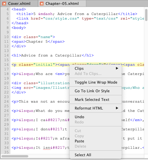 See the attached screenshot with NoWrap set. This will tentatively be in the next release and pushed to master once we are 100% sure there is no need for a Sigil-1.9.3 anytime soon. Please note this really only helps show structure if the text does not already have inserted new lines in it. This is the issue with the Alice in Wonderland test epub I often use. So to make this useful in some epubs, you may have to use Mend and Prettify first so that ToggleLineWrapMode works as expected in these cases (as it replaces \n within p tags with a blank " " as that is what xhtml/html rules say should be displayed in these cases). ps. This has now been pushed to master and will be in the next release. Last edited by KevinH; 03-18-2022 at 01:15 PM. |