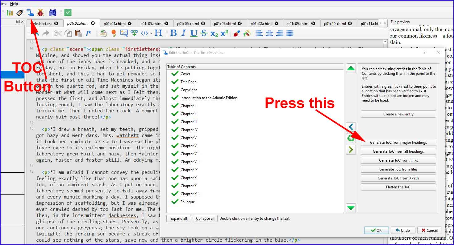 You can use the Calibre editor to build a ToC.  |