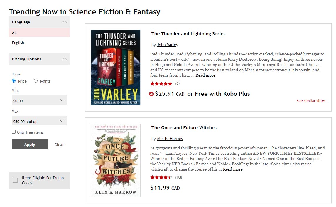 That's because physical stores are the only place that matters. If you have to scroll through fifty pages at Kobo, you'd be better off looking to the left and choosing the correct sub-category. I don't normally shop Kobo and was able to figure it out in ten seconds.