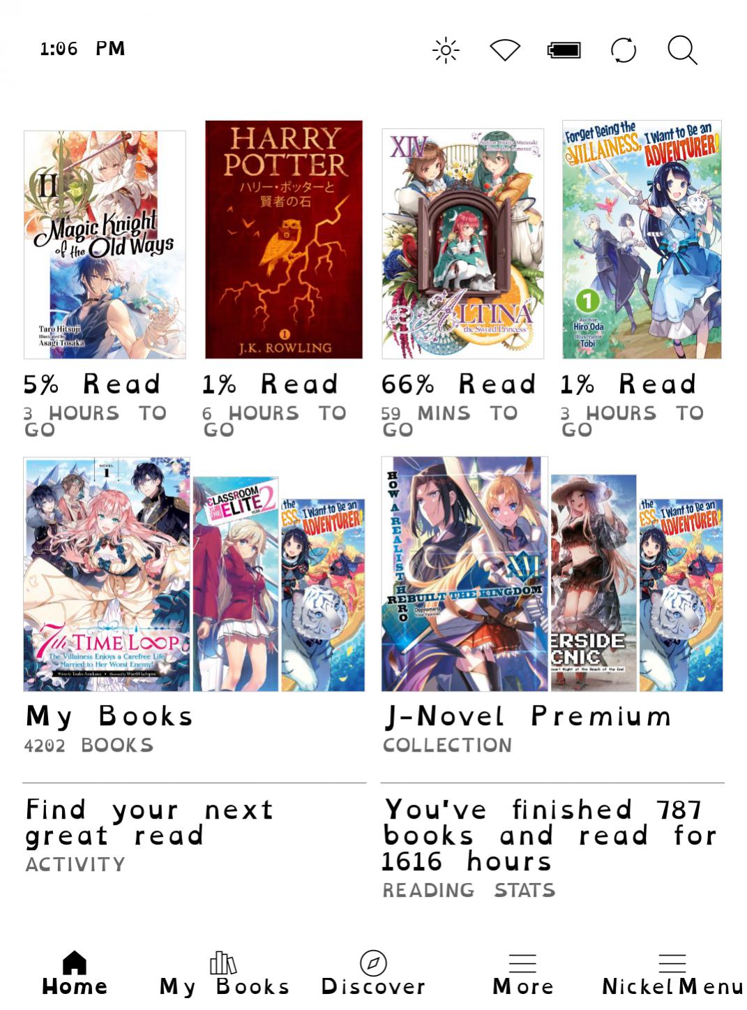 DyslexicMode=true A caveat is that you need to have the OpenDyslexic font in your system partition (i.e. /usr/local/Trolltech/blahblahblah). If you deleted it or only have a copy in /mnt/onboard/fonts, it won't work (although I wonder if a patch could be made to change the file path it looks for the font at; I assume it's hardcoded). The good news is that you can drop in the newer r3 version of the rewrite of the font that has extra glyphs and language support and it still works. And (although I haven't tried this myself) if you wanted to have the UI show traditionally unsupported characters like Cyrillic or Vietnamese, I think if you take your favourite font that has that support (ex. Noto Sans) and change the internal font name to OpenDyslexic and replace the stock version with it, it will display that instead. Hopefully, this is a stepping stone to Kobo allowing us to change the UI font officially without having to use patches or internally rename fonts. Last edited by rtiangha; 06-10-2022 at 07:16 PM. Reason: more screenshots |