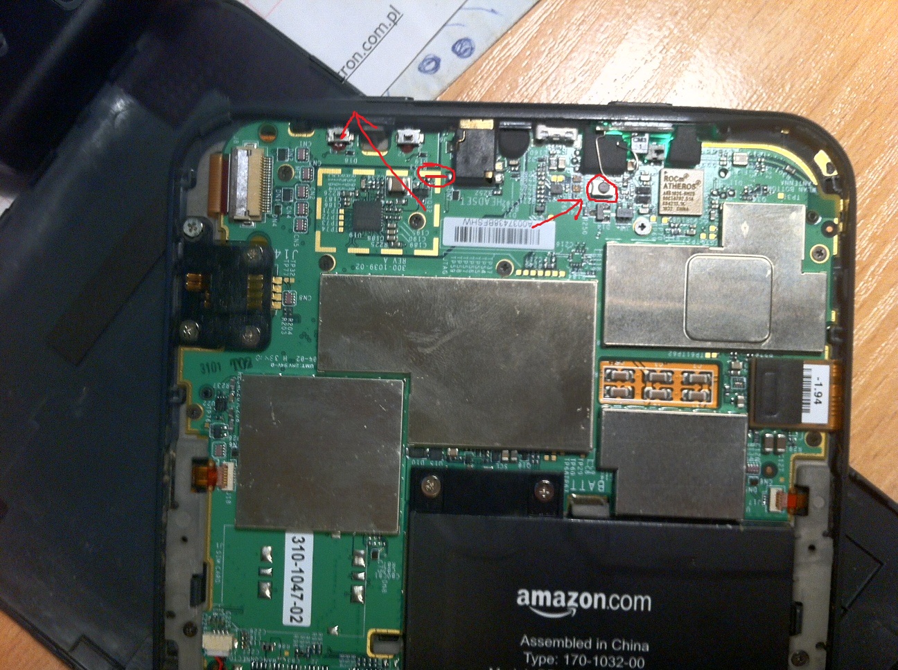 Hello. I am writing a report on the successful recovery of two practically dead Kindles. The reason was still in the cracking of the balls under the processor. On the advice of eddie.t.h (many thanks to him!) I warmed up the processors of both books with a soldering hot air gun at a temperature of about 280 (the station is calibrated and the temperature approximately corresponds to the set one) until the balls under the processor melt. Additionally, I used a lower heating of about 120 degrees to reduce the likelihood of deformation of the board from overheating. After cooling down and connecting the batteries, the books immediately started working - the charge went off (about 800 mA), the normal reaction to the power-on slider (the green LED lights up), when connected via USB, the internal memory with all folders and books was seen. There was no need for flashing and resetting. After a day of books in a sleeping state, there is no increased battery discharge.