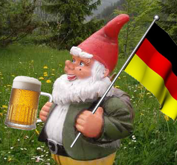 Liebe Schweizer, Österreicher und Luxemburger: Könnt Ihr Euch wirklich mit diesem Kerl identifizieren? Hier kommt vorsichtshalber die Alternative: Zwerg mit Deutschlandfahne und Schweizer Mütze, Österreichischem Bier und Luxemburger-Jacke.