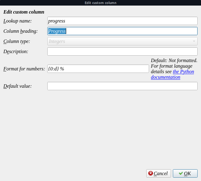 How would the custom column be to be able to have it in a column in Calibre |