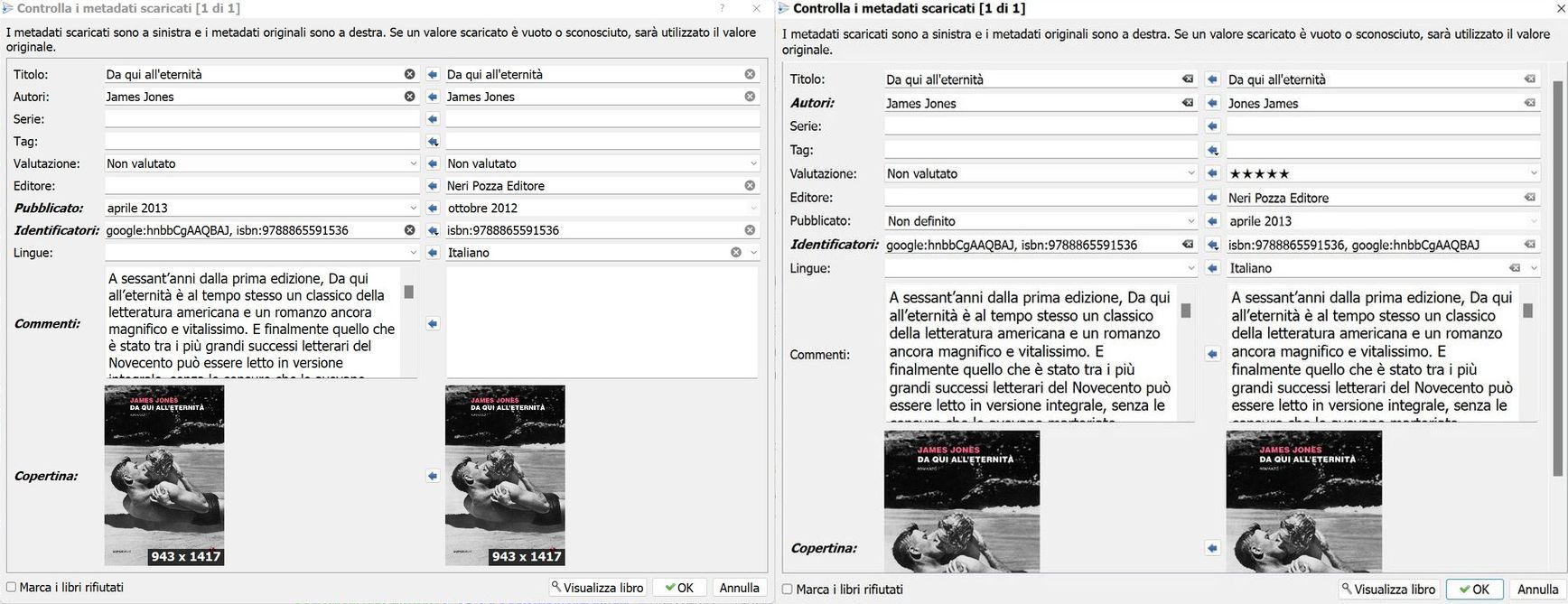 The main reasons are because the Comments text box is bigger (as is the text), and the cover image is larger - perhaps the previous version resized the cover image to fit the space available. Here are the two Bulk Metadata Download Preview windows, clipped from your post, side by side It looks like the vertical spacing between widgets is smidgen smaller. There's not much you can do about that, nor the size of the comments box or cover image, they would require a code change. I don't think you can suppress the message in the status line about new versions, you can suppress the popup message in Preferences->Behaviour (top left). I'm done… for now. BR Last edited by BetterRed; 08-03-2022 at 08:17 PM. |