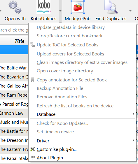 I've attached images of what I see when right-clicking on a book and when looking at the menu for the KoboUtilities but this is consistent for all the menus I've tried.