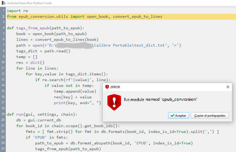 I tried to simulate the "Count Pages" code to read the content of Epubs, when I run the code it tells me: "typeerror 'function' object is not iterable"Code: