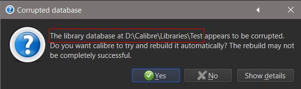When I double click "Calibre.exe", the message "the library database in D:\Caliber2\caliber library" seems to be corrupt...... ". shows.