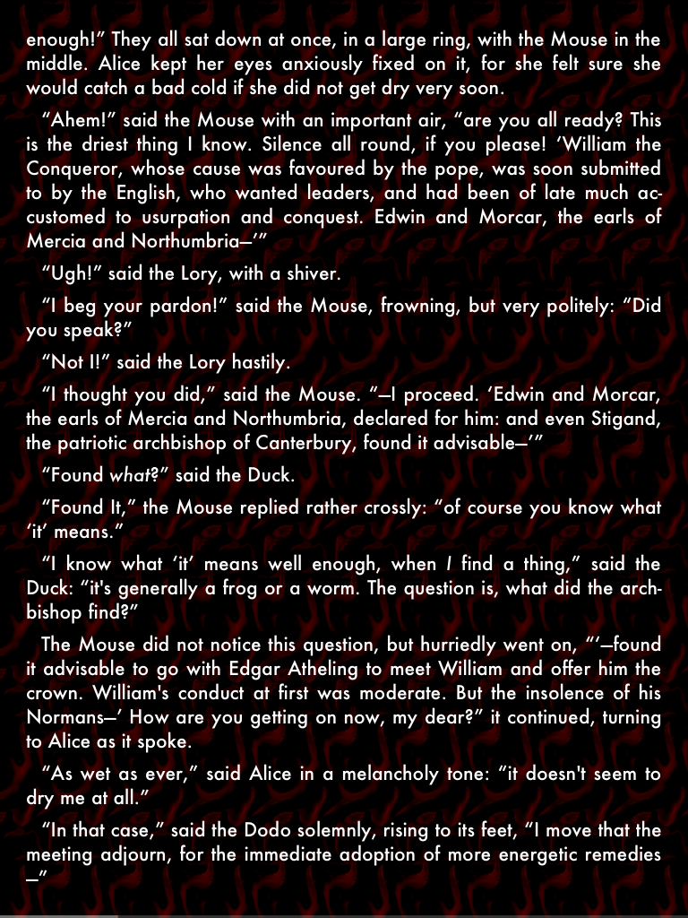 I use many, many background textures in dark mode. For an example, you can take a look again at that tweet of mine from July. The second screenshot on the left shows one of Marvin's dark background textures. Moon is a lot better than Marvin in themes (Marvin only allows you to save five themes, which is very restricting), so I use at least 15 (!) dark background textures in Moon, along with about 15 light background textures. My favorite dark background texture in Moon is solid black with little red flames here and there all over the screen. It's my default night mode in Moon. Fabulous experience, reading books like that! In fact, I have just found a similar screenshot from Stanza (!) way back in 2010: The "little red flames" are a lot more subtle in my current dark mode background textures I use in Moon, almost imperceptible in a screenshot, but they are definitely there, it's really different from a solid-black background, and they enhance my reading experience considerably. Quote: